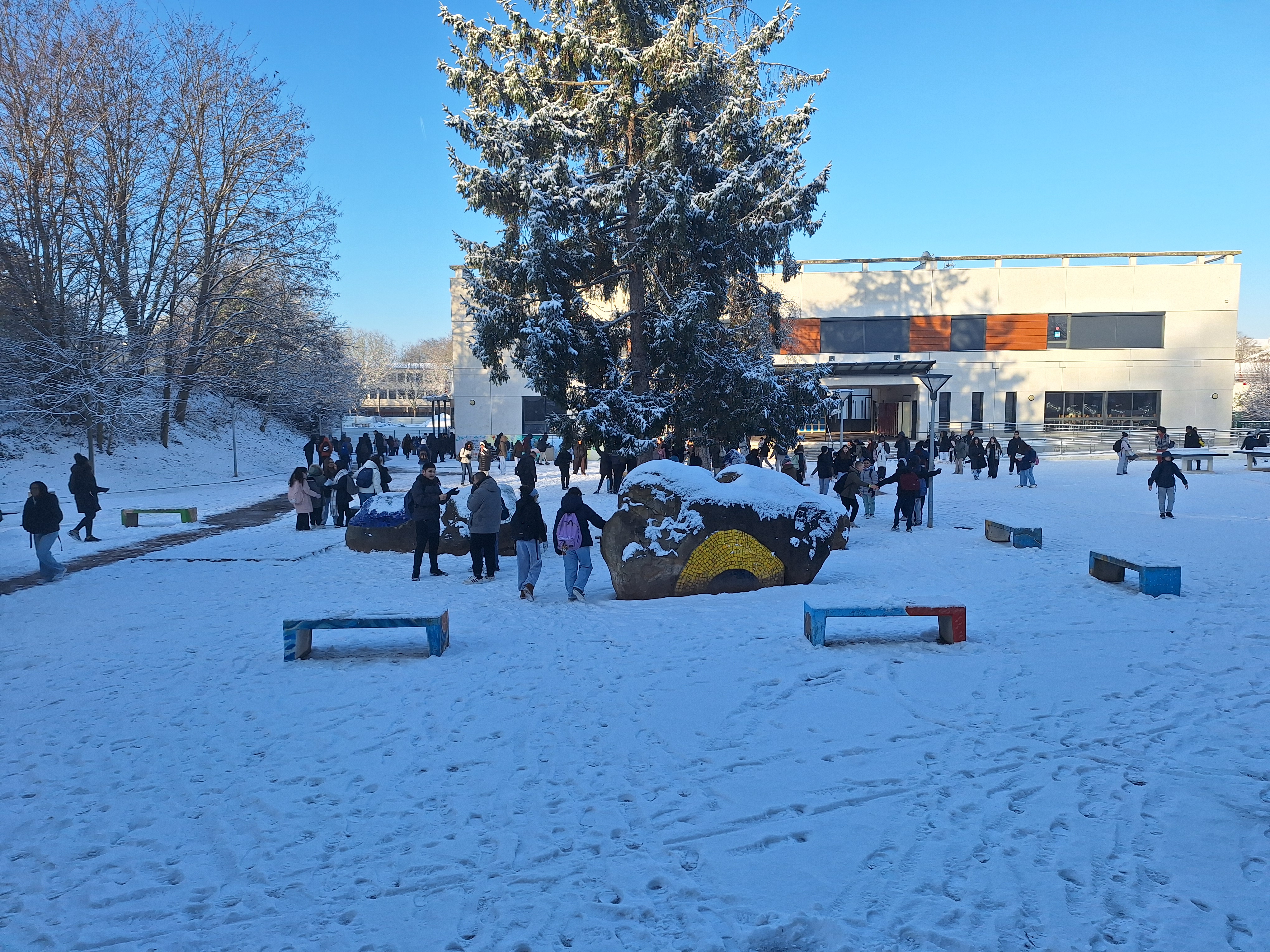 Quelques photos enneigées du collège et de la mare pour le plaisir des yeux.